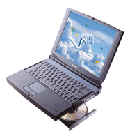 The VAIO 705C has a 150 MHz cpu with MMX instruction set. The laptop comes with 16 MB of RAM, 2MB RAM for video (256bit Neo-magic chipset) and an IBM 2.1GB hard drive. The LCD panel is a SVGA 800x600 resolution 12.1 inch screen. And comes in a very lovely two toned purple color. It also has an integrated 33.6Kbs modem, USB port, and 15 pin VGA and TV rca out.